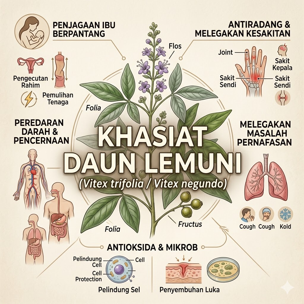 Daun lemuni (Vitex trifolia dan Vitex negundo) ialah herba tradisional yang digunakan dalam masakan (contoh: nasi lemuni, mi lemuni) dan perubatan tradisional. Kajian moden terhad tetapi menunjukkan beberapa potensi manfaat, terutamanya sebagai antioksidan dan antimikrob.
