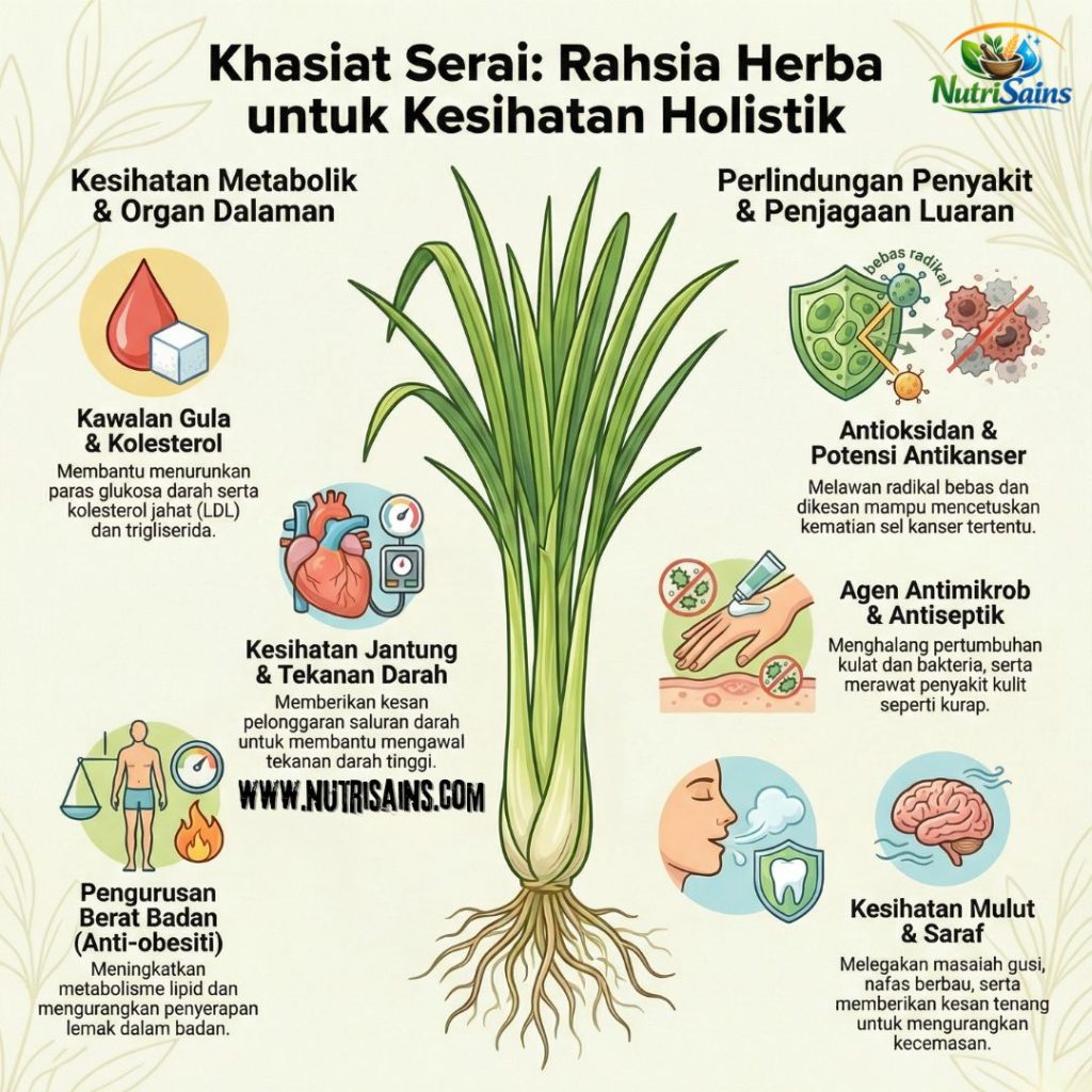 Bagi rakyat Malaysia, serai (Cymbopogon) bukan sekadar bahan aromatik dalam rendang atau tomyam. Secara saintifiknya, herba ini menyimpan profil fitokimia yang sangat luas, menjadikannya salah satu elemen penting dalam amalan kesihatan holistik. Mari kita bedah apa yang membuatkan serai ini begitu berkuasa untuk tubuh badan kita.